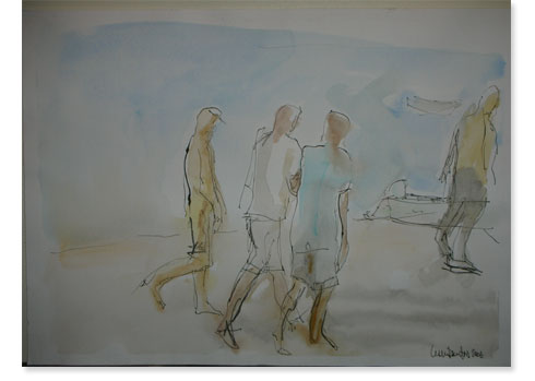 aquarela e carvão sobre papel