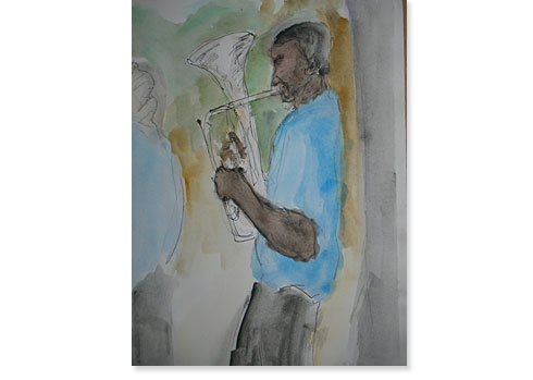 aquarela, nanquim e carvão sobre papel
