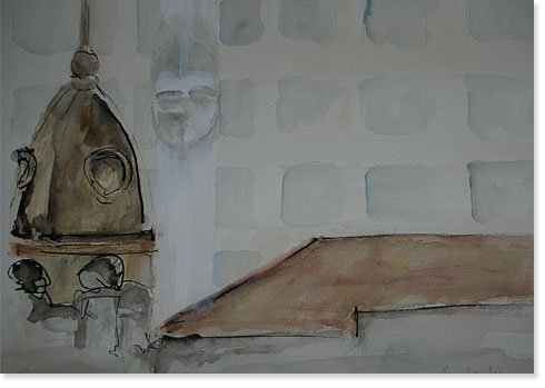 aquarela e carvão sobre papel
