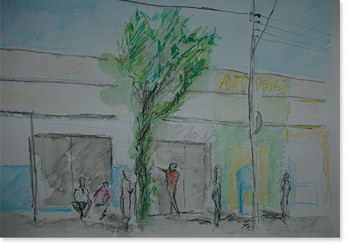 carvão e aquarela sobre papel